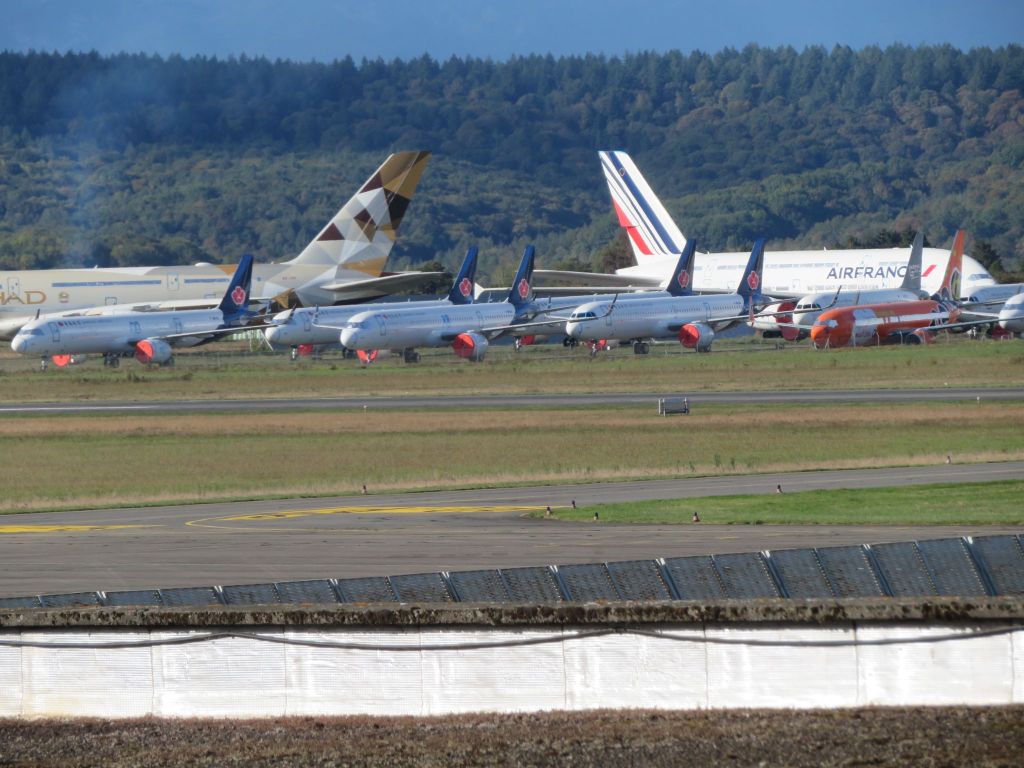 Lot’s of breaking taking place with some recent arrivals like the Shenzhen 739’s/Easyjet A319’s all gone now.Some of the long term inmates like the Ex Brunei Government A342 are now also being broken up. The 2 American registered Mango aircraft not in open storage so possibly in the big black Tarmac hangar which was firmly closed.