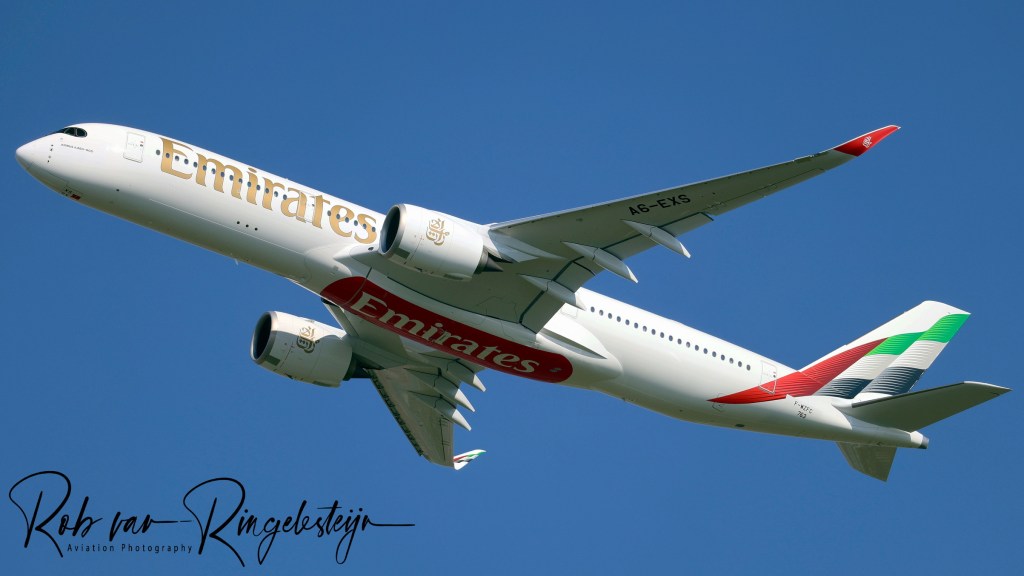 A6-EXS Airbus A350 941 763 Emirates Airline FCS REG VISIBLE UNDER LEFT WING